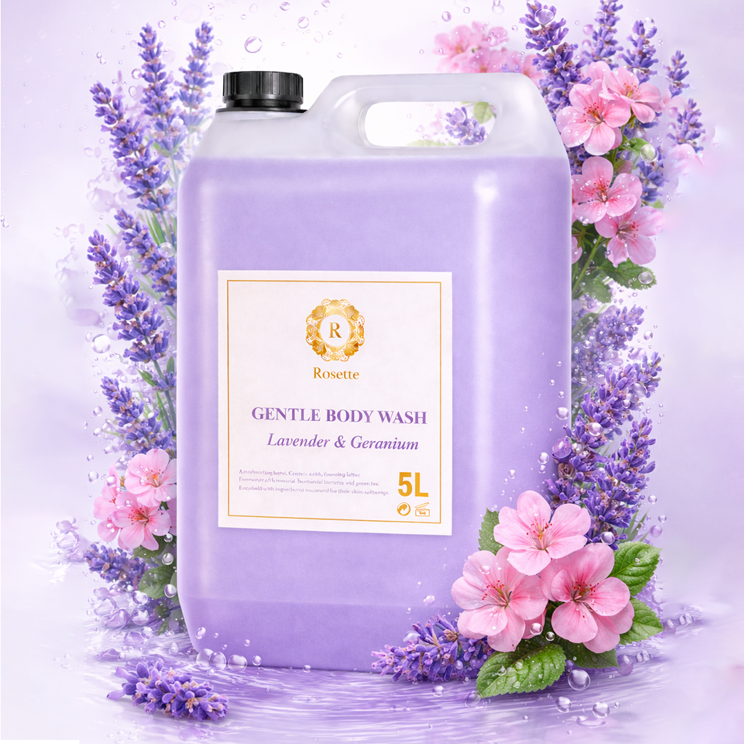 Gentle Body Wash – Lavender & Geranium (5L) softly cleanses the skin while providing a calming and refreshing bathing experience. Infused with the soothing scents of lavender and geranium, it helps leave the skin feeling clean, soft, and delicately fragranced.